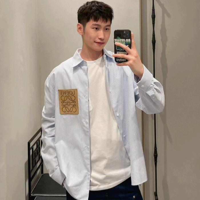 로에베 아나그램 패치 스트라이프 셔츠