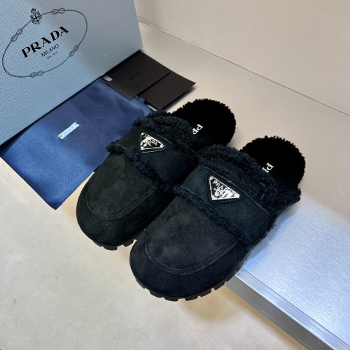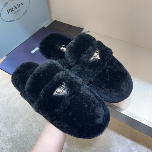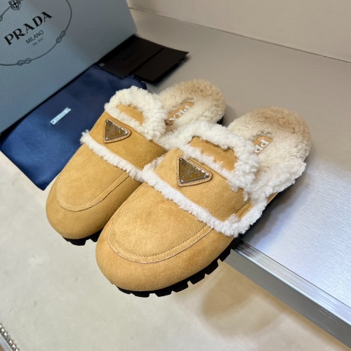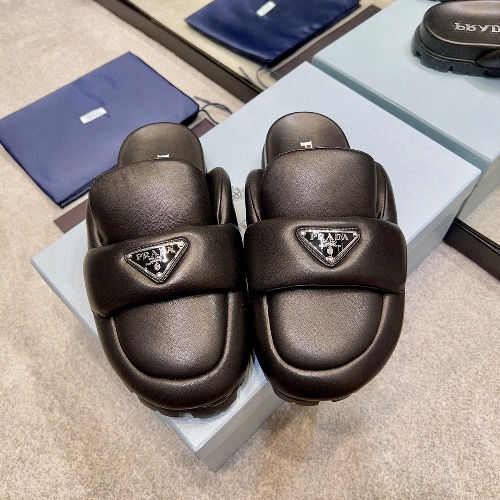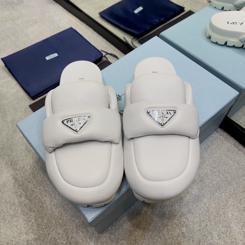 PRA 트라이앵글 로고 시어링 슬리퍼
