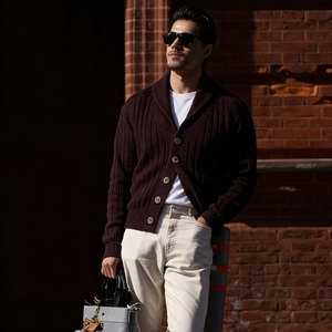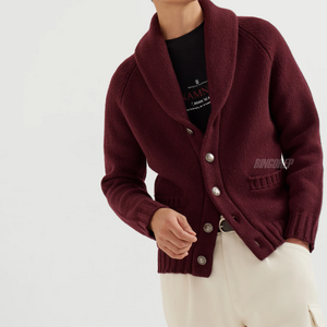 브루넬로쿠치넬리 패턴 숄 칼라 가디건