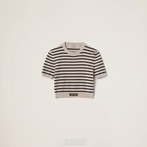 (W) MIU 스트라이프 자카드 크롭 니트 탑