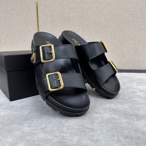 PRA 버클 디테일 로고 샌들