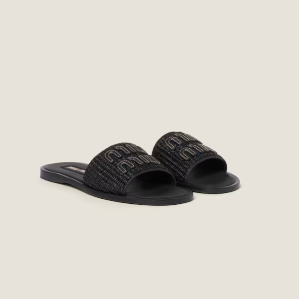 (W) MIU 라피아 슬라이드 블랙