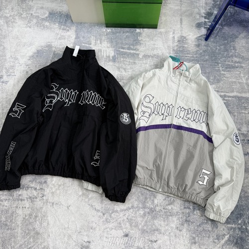 상의 전체에 걸쳐 패널 분할 디테일과 고급 자수가 다수 들어감.