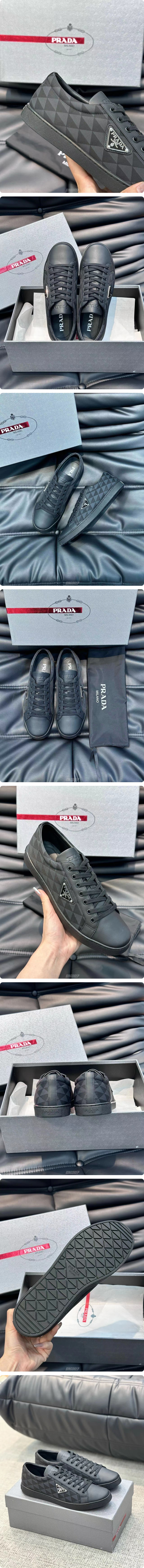 PRA 2EE376 레더 나일론 스니커즈