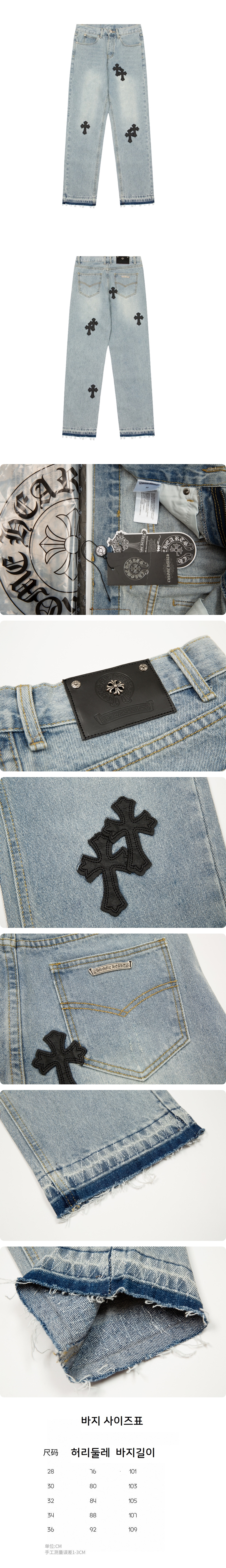 크롬하츠 블랙 크로스 레더 라이트데님 진
