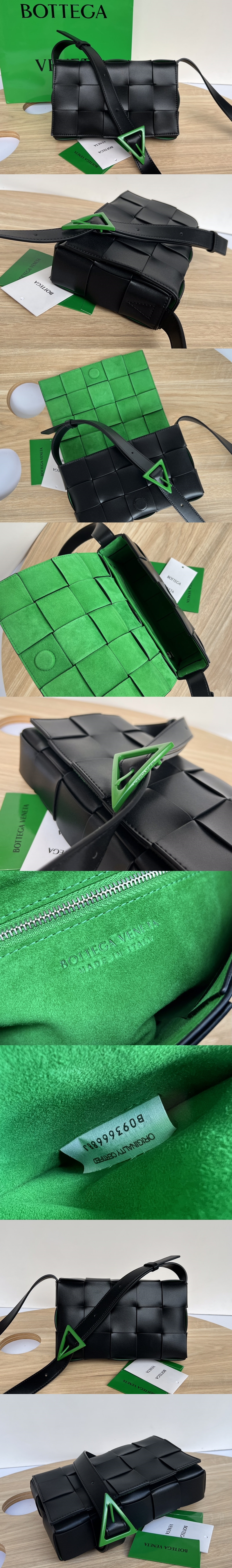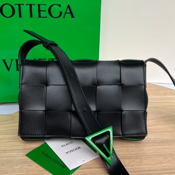 (JING공장) BV 어반 레더 카세트백 블랙-스웨이드그린 708768