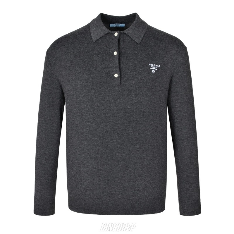 PRA 캐시미어 블렌드 로고 자카드 스웨터 폴로 - 그레이