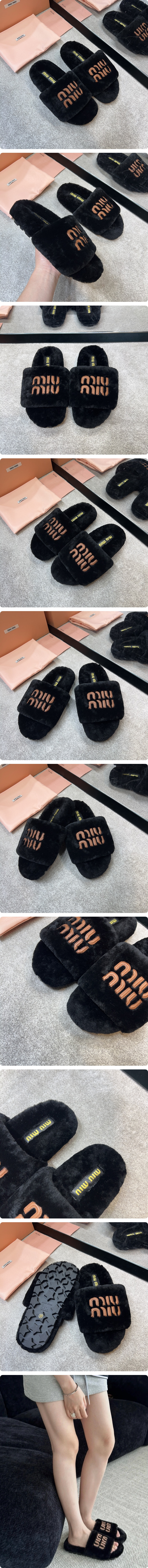 (W) MIU 로고 시어링 슬리퍼