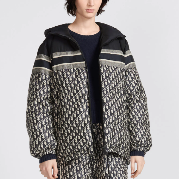 스탠드 칼라와 지퍼 포켓, 뒷면의 CHRISTIAN DIOR 시그니처 자카드 밴드가 특징입니다.