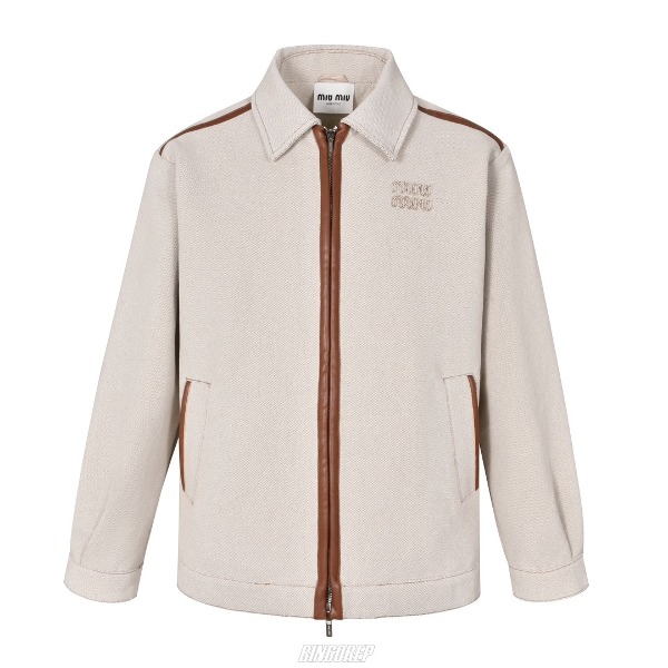MIU 자카드 캔버스 블루종 자켓