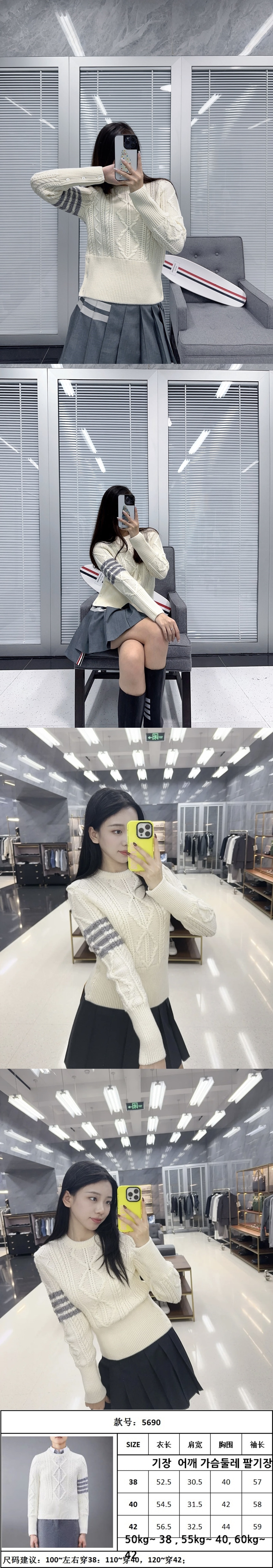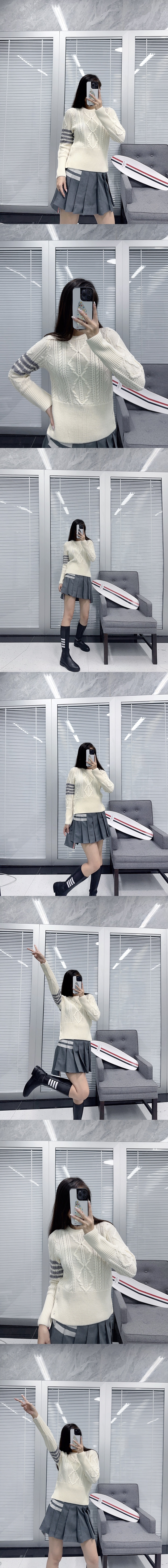(W) TB 사선 완장 케이블 니트