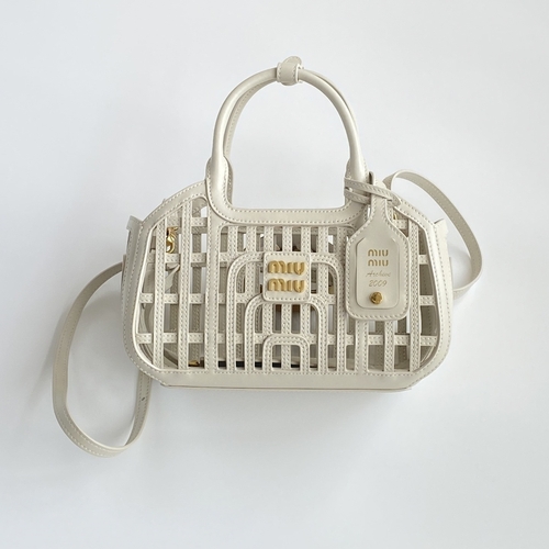 (T무역공장) MIU 가죽 바스켓 핸드백 스몰