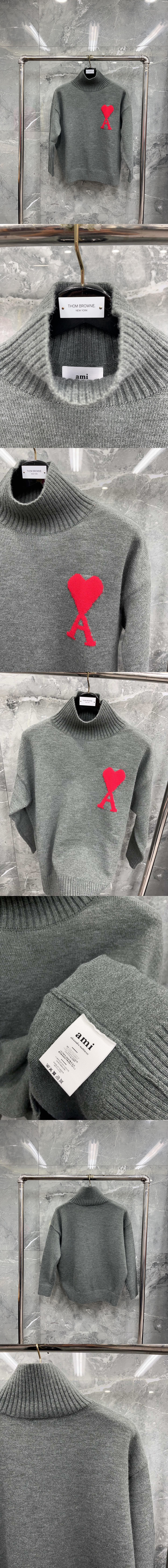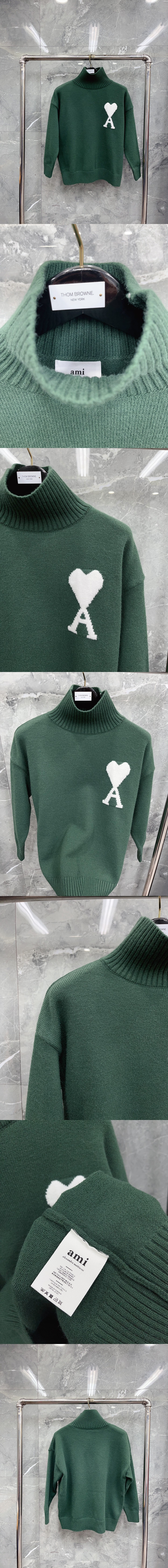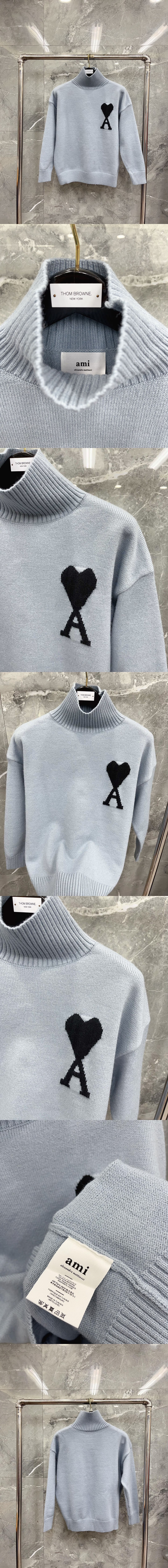 AMI 빅 하트 터틀넥 스웨터