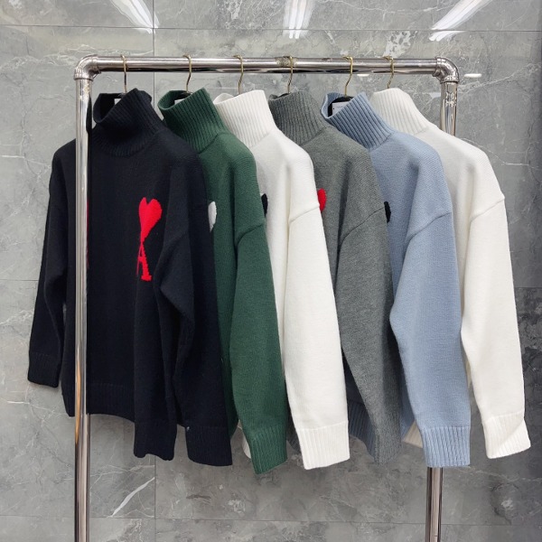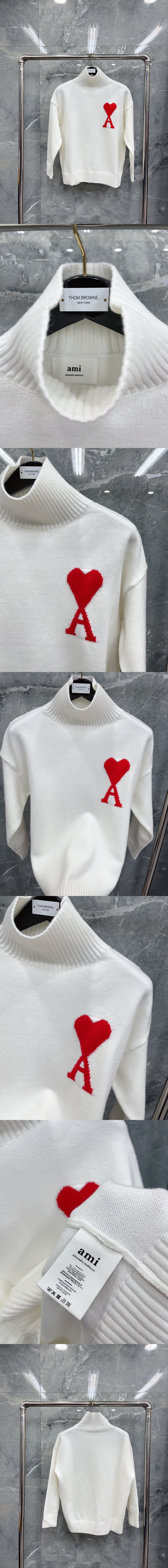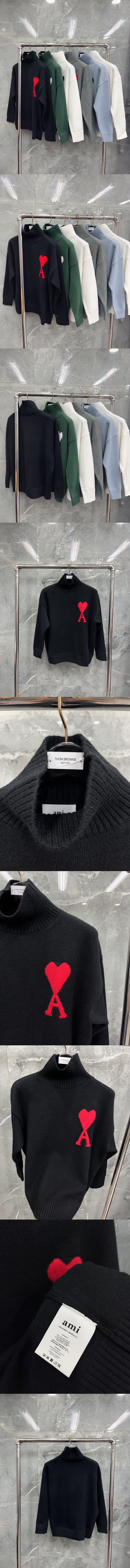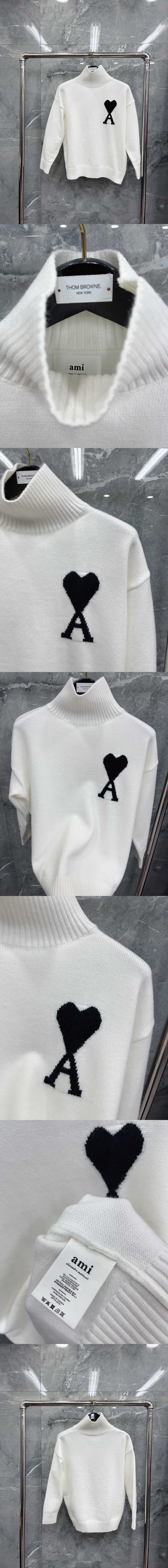 AMI 빅 하트 터틀넥 스웨터