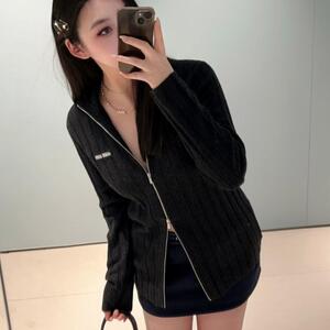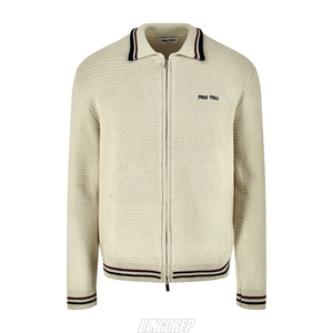 MIU 로고 자수 지퍼 가디건